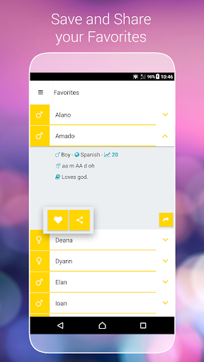 - Recommended names based on favorites.