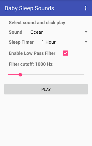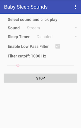 Baby Sleep Sounds is a collection of sounds which, when play in a loop, may help a baby fall asleep and stay asleep. The sounds are different types of white noise, such as a waterfall, a clothes dryer, or a fan. The application includes a few settings, which include a playback timer and a configurable low pass filter.
