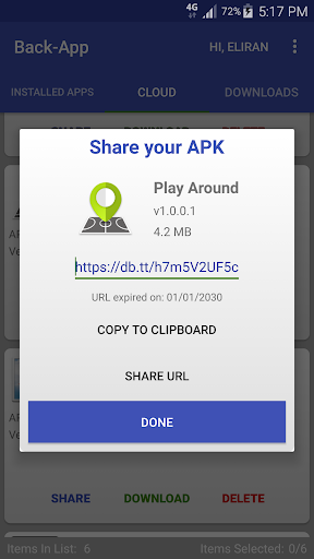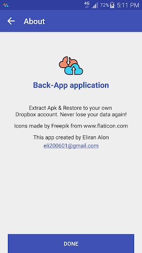 * Store the user's application file in his Dropbox account (Doesn't save the application data only the installation file).
