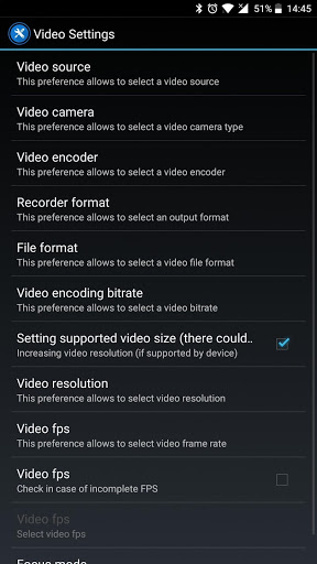 You will be able to select resolution of recorded video (please be informed that resolution depends of camera's supported features).