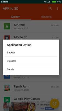 4 key feature -app backup to sd -install from sd -uninstall from device -share you app through facebook or whatsapp **Don't forget to allow storage permission before user