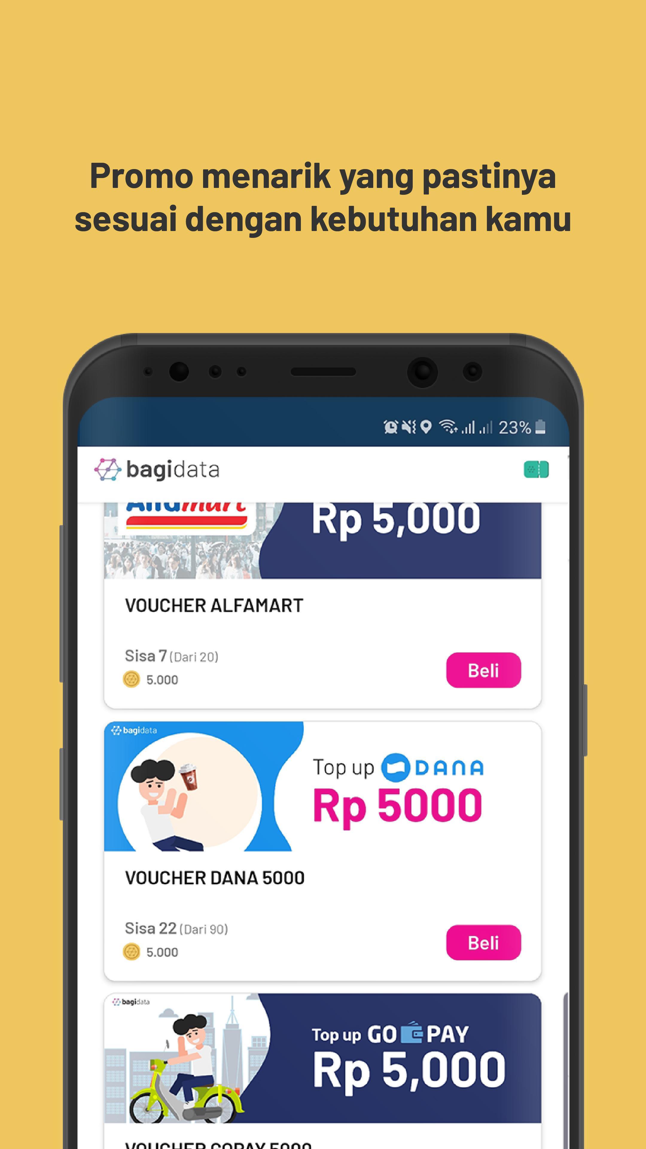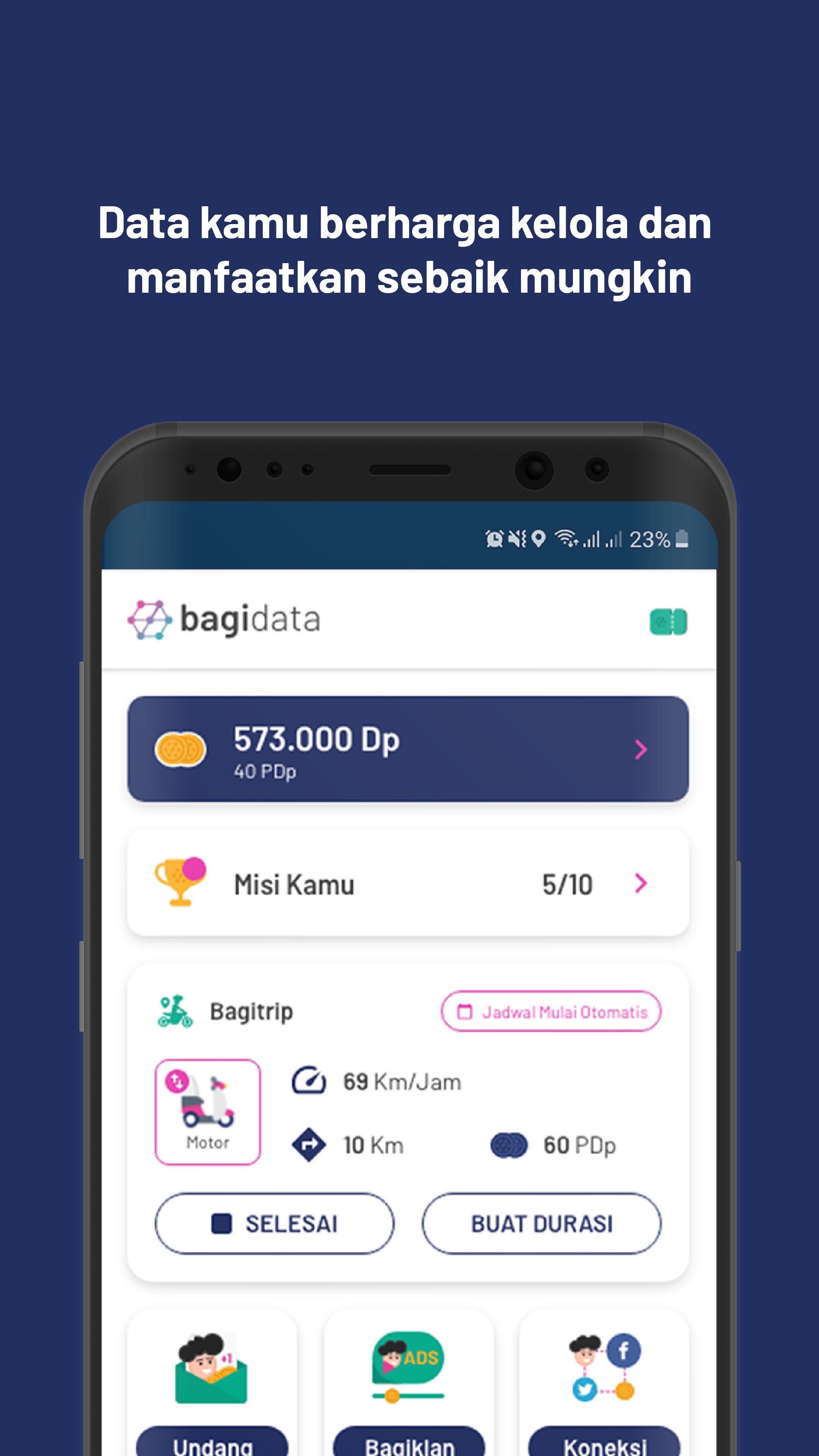 Gunakan aplikasi Bagidata seperti halnya sebuah game, tuntaskan semua misi untuk mendapat keuntungan lebih setiap harinya.