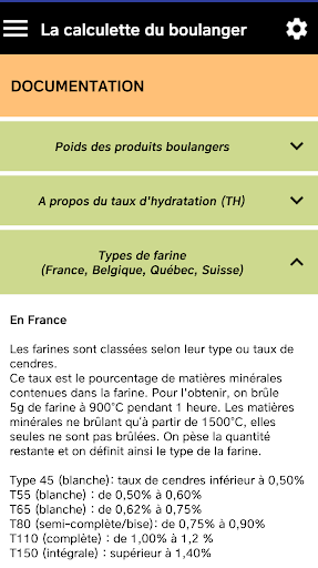 In addition to the calculations, you will find a documentation section with useful information on the weight of the products, the types of flour, the nutritional data ...