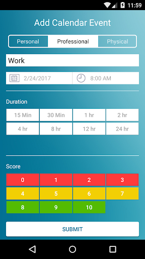 The Balance Me app lets you easily measure where your efforts go each day and chart the progress toward a better balanced you.