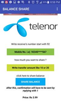 This option is only for Telenor to Telenor balance transfer, and limited to Telenor prepaid customers