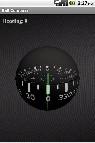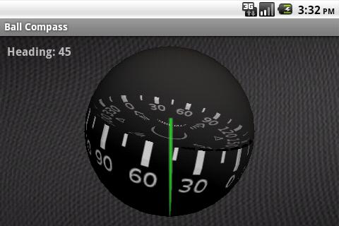 A 3D Ball Compass using OpenGL ES - senses direction, pitch and roll - heading includes magnetic declination set in the Settings form. Can use GPS - has 16 compass points Note: Nexus S and Droid must have latest firmware for this to work.