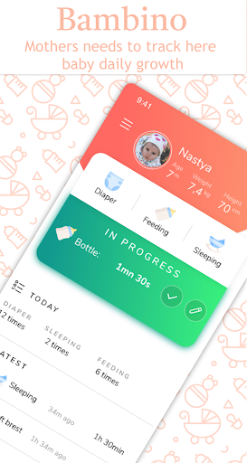 Bambino helps you to keep a daily track of your baby needs. So far, it is useful for breast-feeding of babies, sleeping tracker for babies and diaper change reminder and tracker for babies.