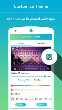 6. Customize Theme provides facility of Keyboard Transparency, Background Color, Font Color, Font Apply in Bangla keyboard.