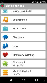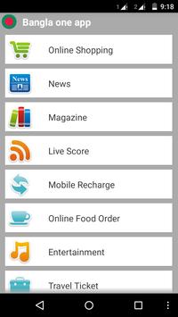 This app includes Online Shopping Stores, Bangla News, Live score, New songs, Live TV, Online Mobile Recharge, Online Food Order, Wikipedia, Book Travel Tickets, Free Classifieds, Latest Technology, Magazines etc.., in Bangladesh.