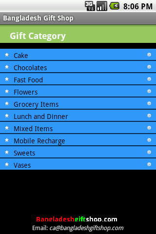 check our catalog and send a gift from Bangladeshgiftshop.com to BangladeshSend gifts to your loved one in Bangladesh on any occasion or day from Bangladeshgiftshop.Browse our selection of gift by category from our mobile catalog together with price and product picture. you can also 1.Add any product to you favorite list2.Post the product information on facebook or twitter 3.Send query about any product from the Apps4.Directly contact to our customer care 5.SMS the product information to your friendWe distribute various gift such as flowers, cakes, sweets, greeting cards, grocery item to Dhaka and other place in bangladesh.For similar catalog with more advance feature for your shop please contact with us