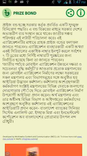This APP enables its users to obtain the prize of a prize bond number as well as the history of last 3 years or last 7 draws of the prize of a selected number by inputting one or several numbers