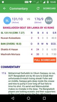 2. Live scorecard and Commentary for live match with ball by ball update.