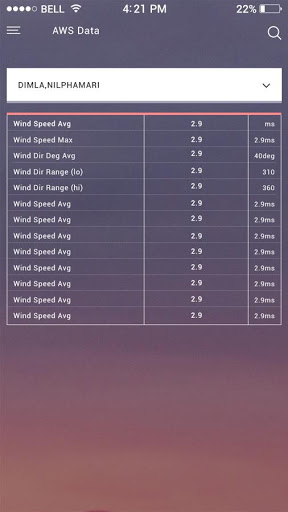 BMD weather App is developed under Bangladesh Meteorological Department. This interactive app provides detailed present weather observation and weather forecast for all Bangladesh locations, it provides the current temperature in Celsius. It also provides current weather condition, relative humidity, atmospheric pressure, dew point, wind speed and direction, in addition to seven days future/previous forecast.