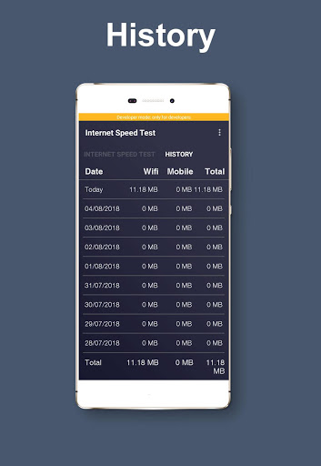 - Display historical information Amount of data used through mobile networks and wifi from time to time