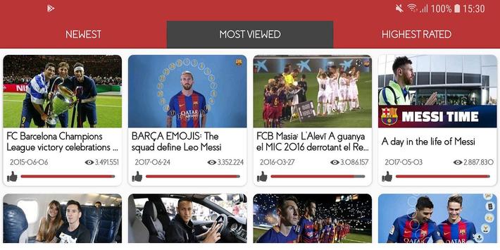 This application helps all fans of Barcelona FC collect top videos and play them in the most simple way, which include: new updated, most viewed and highest rated videos. Besides, the nice interface is provided by this application to allow you play these videos easily, as well as display important information like total view, published time, like rate and so on.