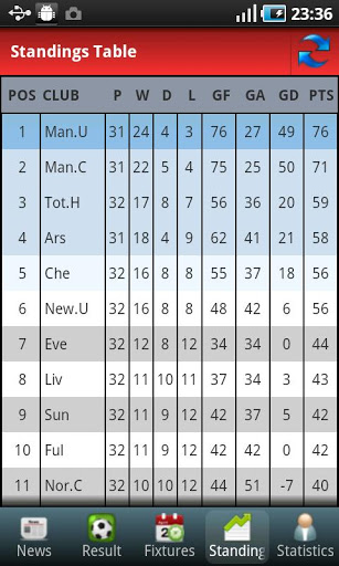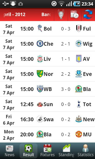 All information of Barclays Premier League Premiership FA Cup Carling cup:News Results Fixtures Standings Top ScorersSpecial features: can keep data offline and update data automatically or manually.tags barclays premier league, premiership, FA Cup, Carling Cup, football club, soccer club, England, english