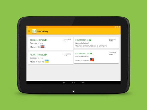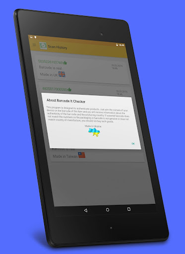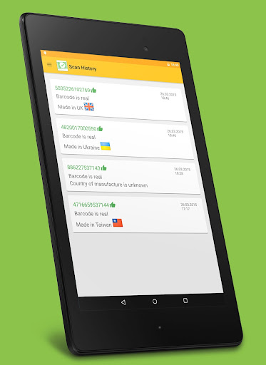 Barcode it Checker is designed to checking goods by its barcode. Any standard barcode has control sum. My program allows you to check this sum simply by pointing your device's camera at the barcode. Also my program shows the country of manufacture of goods on its barcode. If scanned barcode does not match the numbers on the packaging or barcode is not genuine or does not match country of manufacture, you should not buy such goods.
