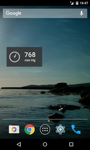 For barometer implemented widget (2x1) and the ability to save data specified time interval. Stored and current data of atmospheric pressure are displayed in a graph.