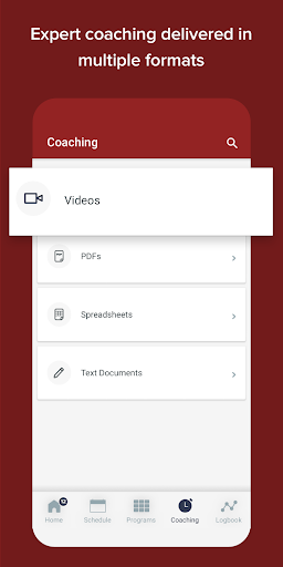 Full Programming suite including video demonstrations, descriptions and complete guidance on reps, sets and rest intervals etc