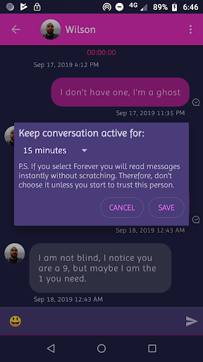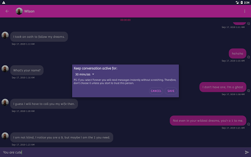 - Messages you receive from strangers are covered so you are not bothered by unwanted messages, you must scratch every single message letter by letter to read it.