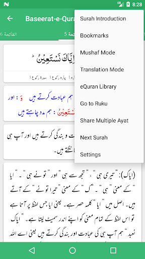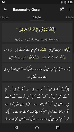 - Ability to show/hide Word by Word, Quran Translation (Tarjuma) and Tafseer