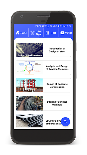 * This civil app contains all the Design of Steel Structure related 160 topics in 5 chapter in very simple and informative language with suitable diagrams which helps Civil Engineering (CE) students to score good marks in exams.