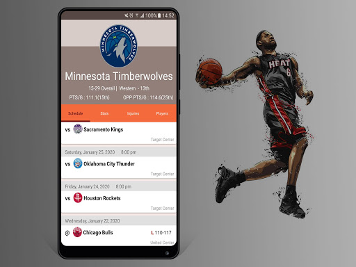 The application helps you see the NBA scores, schedule, standings, team stats , injuries , ... anywhere, anytime. Light and easily to use.