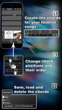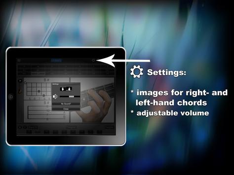 - see the chords in standard string representation, in TAB-representation, as colored photos in one position,
