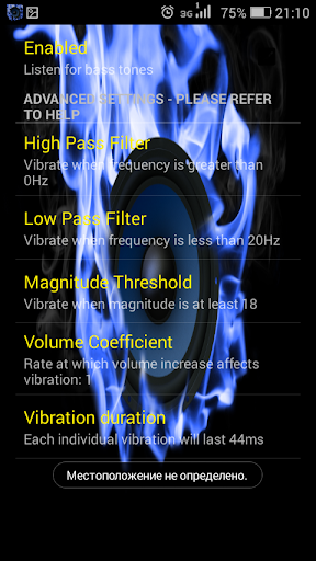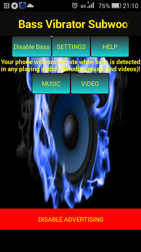 Bass Vibrator Subwoofer detected bass on your phone and play any sound with Vibro Super Bass. If you need enhance then set settings:high-pass filter, low-pass filter and other. This Bass Subwoofer Vibrator will allow watch clip, movie with 4d vibro sound effects and listen music with subwoofer effect.