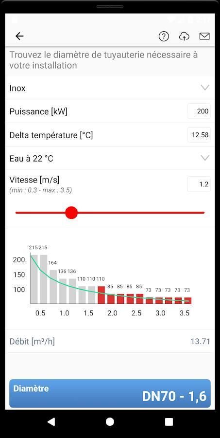 • You, installer, you can choose your hydraulic pipe diameters and gas instantly directly on site.