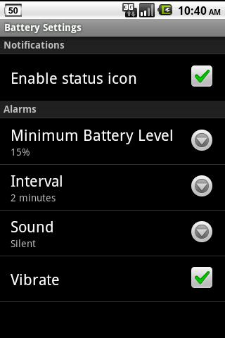 This is simple application which will monitor your battery life and alert you when you are getting low on powerVersion 0.6: Changed status bar iconVersion 0.5: Changed status bar iconVersion 0.3: Fixed status icon