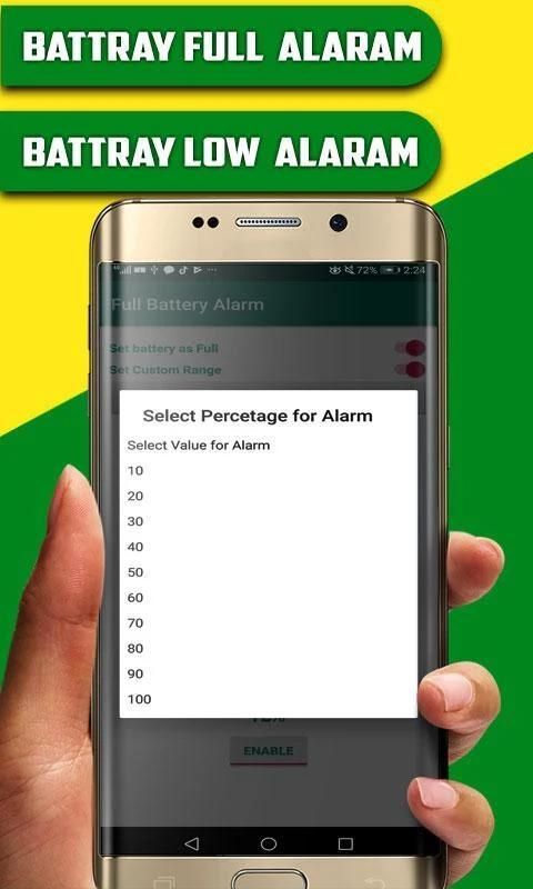 The battery saving and 100% alarm app works on a simple principle. The alarm will ring once the battery is 100 percent charged. You can also set your custom battery levels for ringing alarm e.g. you can set 80% or 90% battery level so that you will get notified once the battery reached that specific level. You can set your favorite alarm sounds and ringtones to get notified.
