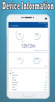 • Displays details: Battery temperature, Battery voltage, Battery health
