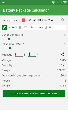 App quickly calculate (for battery package):