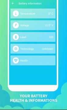 ✓ This optimize battery app will show the battery level as battery charger information.