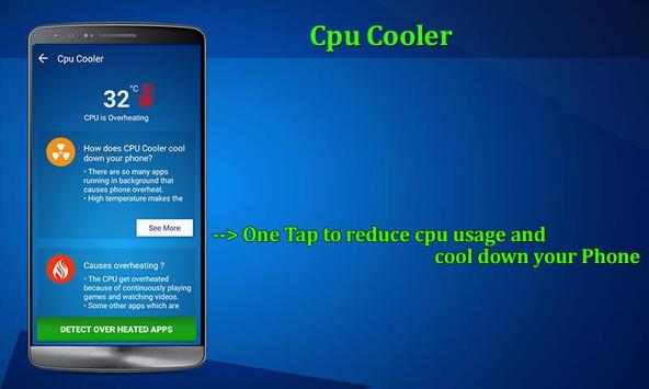 It Closes background running tasks that causes phone overheating and detect high CPU usage apps.