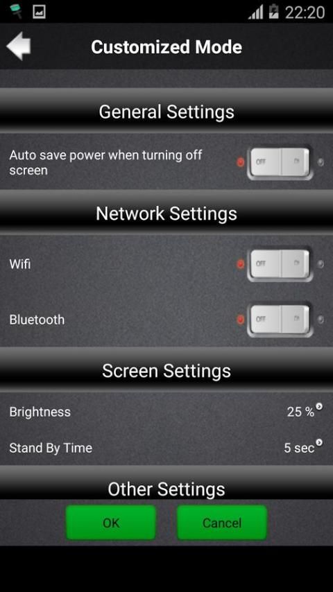 Even you are not using the phone, lots of activities are going on that will drain your battery life. Deep Sleep Mode is set to solve this problem, such as disabling Wi-Fi, Auto-Sync while the phone is not in use. Various modes are available for your convenience. While not using your phone, set your "Sleep Mode" to save time!