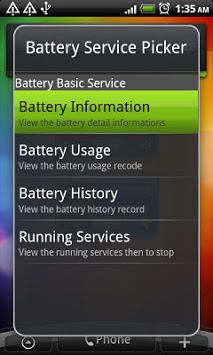 it provides you Battery Information / Battery Usage / Battery History / Running Services