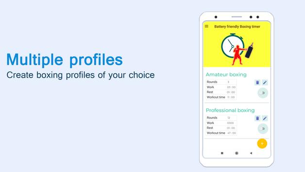 Interval timer designed for Boxing/MMA/Martial arts workouts with "Battery saving mode" for minimal battery drainage.