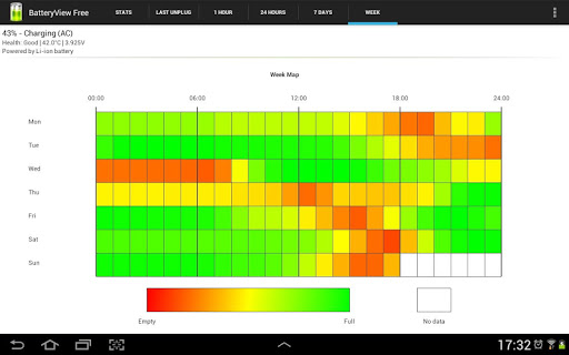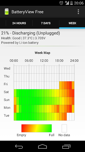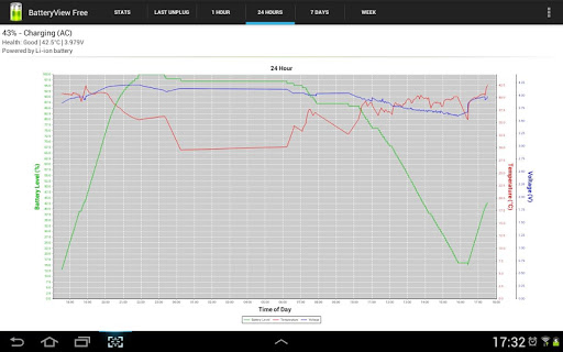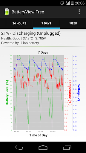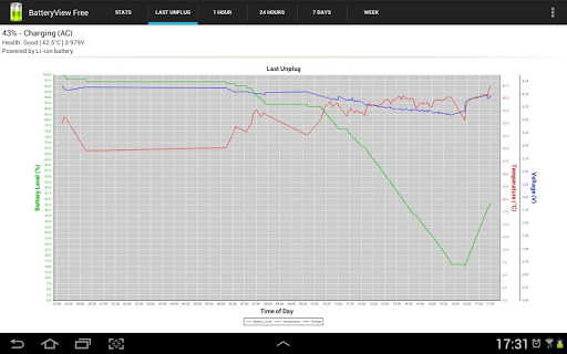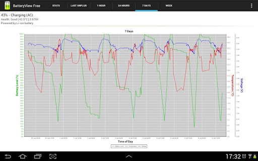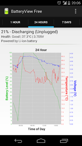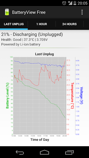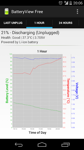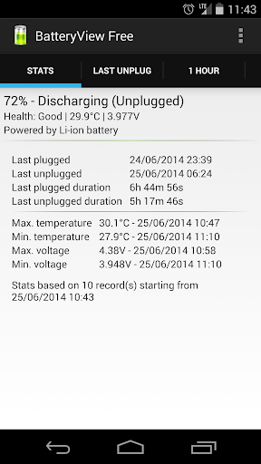 - Tracks battery usage over time. Battery graph - Since last unplugged, 1 hour, 24 hours, 7 days and a week.