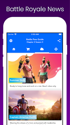 Battle Pass Guide is a helper and ally app: Look all Weekly Challenges & Missions, Receive Daily Item Shop and New Challenges Notifications, Stay Up to Date with the Battle Royale News, Check out all the Leaked and Upcoming Items, and All Battle Pass Rewards.