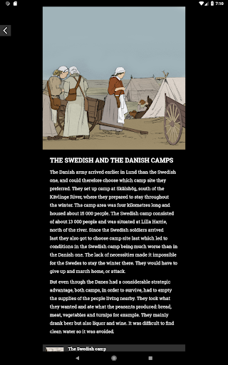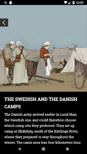 The app brings one of the most important battles of the Swedish Era of Great Power to life. Watch films where the kings of Sweden and Denmark tell you about their thoughts on the battle. Meet the individual soldier, the poor farmer’s wife and many more.