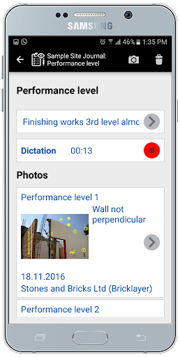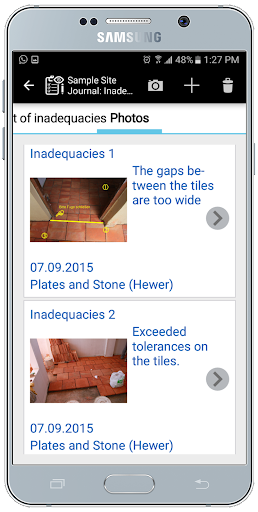 Photos showing the performance level and defects can be included in the daily reports.