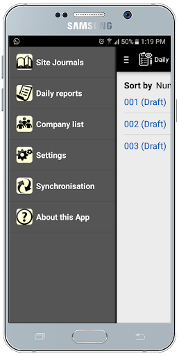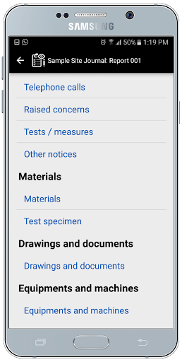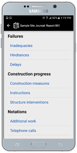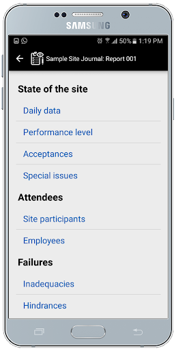 With the App you can create Site Journals, synchronize, edit and them generate HTML reports with the photos and send them via email. Site Journal for Windows and MacOS must be installed on your computer to synchronize and administrate the reports, to print them and create lists of man hours, equipments, materials etc. and create photo albums.