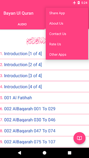Bayan Ul Quran Android Application provides access to lectures given by Dr. Israr Ahmed on Bayan Ul Quran in Audio and Video.