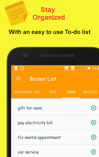 A free grocery list app to simplify your grocery shopping. Now you can instantly sync your shopping lists with anybody in the house! Add recipe ingredients to your shopping list in an instant ! With Bazaar List as your shopping companion, you will never forget your grocery list items again !