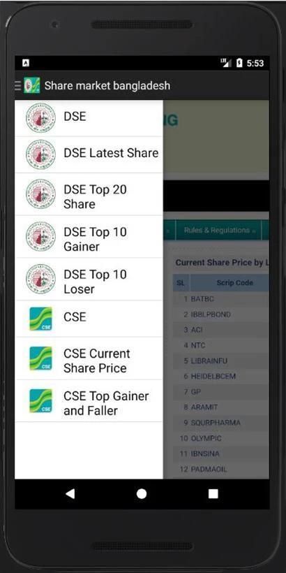 In this application are provide all kind of DSE (Dhaka Stock Exchange) Update Like