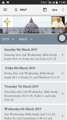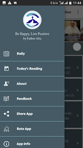 The “Be Happy, Live Positive” app contains his daily homilies following the readings of each day according to the Catholic liturgical Calendar.