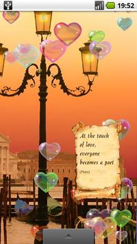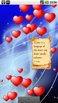 It is a special gift for the sweethearts of every age. If you will pop the hearts moving on the background, then famous love quotes will appear framed in an ancient styled parchment.