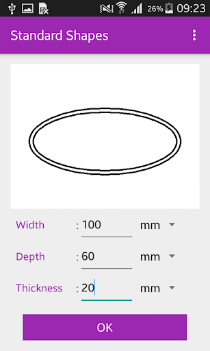 Standard:- Select from a list of standard shapes such as I, C, L, Rectangle...